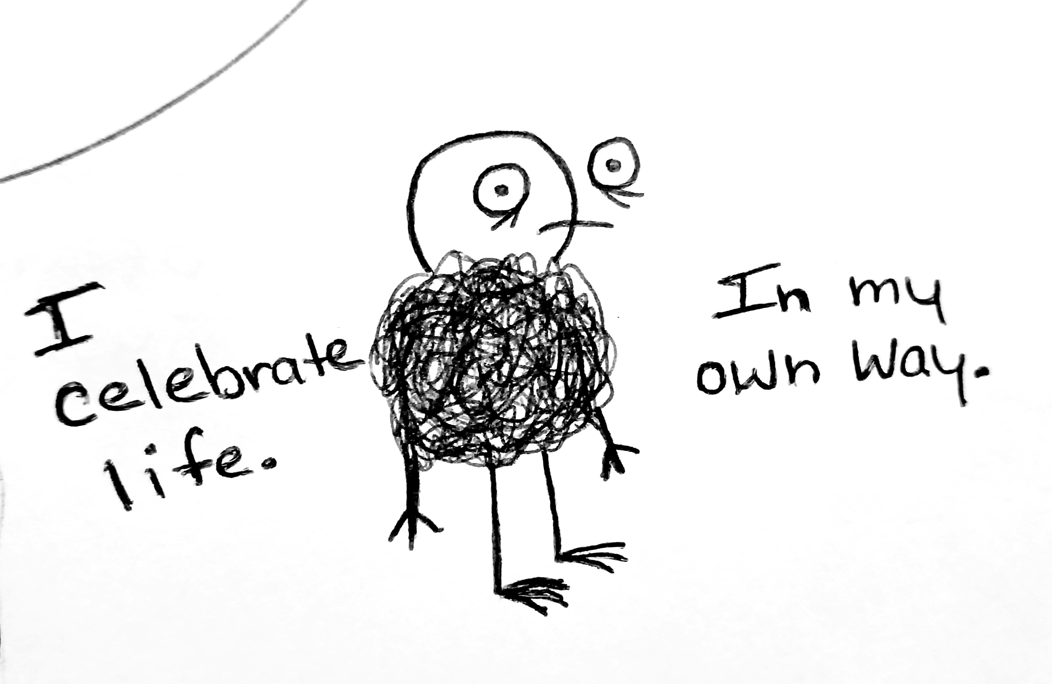 I write and doodle almost exclusively with a gel pen. But lately, I've been stealing a lot of ballpoint pens from local businesses, restaurants, hospital supply closets, and elderly strangers. I don't know why I do it. It makes me feel REALLY bad about myself. In an effort to cheer myself up, I did a series of ballpoint doodles with self-affirmations this week.
