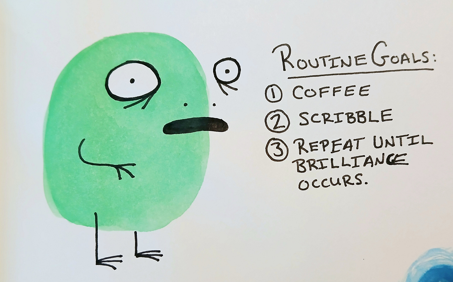 This week, we filled the final pages of one sketchbook and began work on the next. The early days in a new sketchbook are always exciting. So many blank pages. So much opportunity. That’s why we try to set some “new sketchbook resolutions” as we embark. What are practices, attitudes, and areas for experimentation and growth that we’d like to change this time around? For THIS sketchbook, we have a lot of ideas.